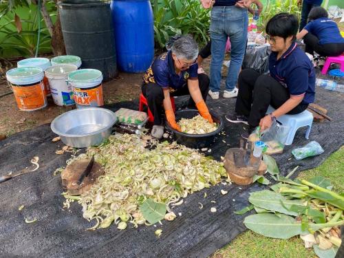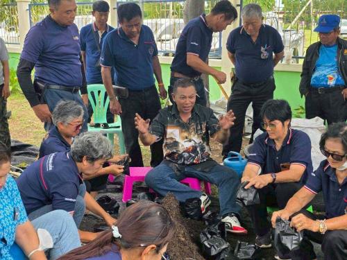 ซึ่งกิจกรรมประกอบด้วย สาธิตการขยายพันธุ์พืช ผัก และสาธิตการทำน้ำหมักจุลินทรีย์จากธรรมชาติเพื่อสร้างความมั่นคงทางอาหารและความยั่งยืน ซึ่งมาจากการประชุมวางแผนขับเคลื่อนงานในระดับพื้นที่ เมื่อวันที่ 7 สิงหาคม 2568 ที่ผ่านมา เพื่อให้เป็นโมเดลต้นแบบของจังหวัด เพื่อนำไปส่งเสริมในประชาชนในพื้นที่ได้มีการปลูกผักสวนครัว สาธิตการทำน้ำหมักชีวภาพและจุลินทรีย์สังเคราะห์แสง และสาธิตการตอนกิ่ง โดยได้รับวิทยาการจากผู้นำอาสาพัฒนาชุมชน ได้แก่ นายวรเศรษฐ์ แตงโต, นางพิชญธิดา พลรักษา, นายประดิษฐ์ ลำไย, นายแผน เจริญธรรม และนายสมคิด บ้านใหม่ ในการถ่ายทอดองค์ความรู้เพื่อเป็นการสร้างองค์ความรู้ให้แก่ผู้นำอาสาพัฒนาชุมชนจังหวัดกาญจนบุรีและมอบหมายให้ผู้นำอาสาพัฒนาชุมชนนำความรู้ที่ได้ไปขยายผลในระดับอำเภอ ระดับตำบลและระดับหมู่บ้าน เพื่อนำองค์ความรู้ไปถ่ายทอด ร่วมกับอาสาพัฒนาชุมชน ในการให้ประชาชนได้รับองค์ความรู้ในการดำรงชีวิต ในการลดรายจ่าย เพิ่มรายได้และสามารถเป็นอาชีพเสริมได้โดยอาศัยหลักปรัชญาของเศรษฐกิจพอเพียง ซึ่งเป้าหมายของโครงการ คือ ประชาชนในพื้นที่จังหวัดกาญจนบุรี ทั้ง 13 อำเภอ มีผักและผลไม้ที่ปลอดภัย สามารถนำมารับประทานได้ตลอดปี และลดรายจ่ายในครัวเรือน รวมถึงสามารถนำผลผลิตที่ได้ไปขายเพื่อสร้างรายได้จากอาชีพเสริมของตน ส่งผลให้เกิดการพัฒนาคุณภาพชีวิตของตนและครอบครัวที่ดียิ่งขึ้น ซึ่งจากการดำเนินกิจกรรมทำให้เห็นว่าปัจจัยแห่งความสำเร็จ คือ