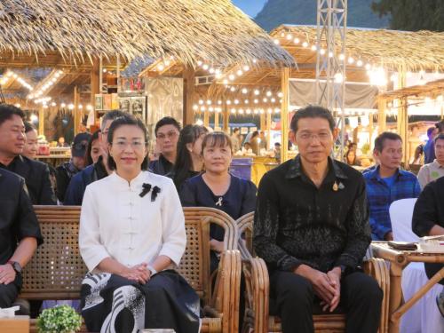 วันที่ 5 ธันวาคม 2568 เวลา 18.00 น. ณ ตลาดชุมชนแก่งแคบ อำเภอศรีสวัสดิ์ จังหวัดกาญจนบุรี นางพรรณวิภา ปิยัมปุตระ รองผู้ว่าราชการจังหวัดกาญจนบุรี เปิดงานกรุ่น กลิ่น กาญจน์" แดนสวรรค์ตะวันตก" (ตลาดเบ๊อะม่ะ) โดยมีนายดำรงค์ มากระจัน พัฒนาการจังหวัดกาญจนบุรี กล่าวรายงานวัตถุประสงค์ของการจัดงานฯ นายศิริรัตน์ บำรุงเสนา นายอำเภอศรีสวัสดิ์ กล่าวต้อนรับ พร้อมด้วยหัวหน้าส่วนราชการ พัฒนาการอำเภอ ผู้บริหารท้องถิ่น นายกฤษณะ ตันปานบุญ ผู้ใหญ่บ้าน หมู่ 4 บ้านแก่งแคบ ผู้นำชุมชน ประชาชน นักท่องเที่ยว กว่า 600 คน เข้าร่วมพิธีเปิดและเลือกซื้อสินค้าภายในตลาด ซึ่งมีผู้ประกอบการเข้าร่วมจำหน่าย กว่า 100 ราย