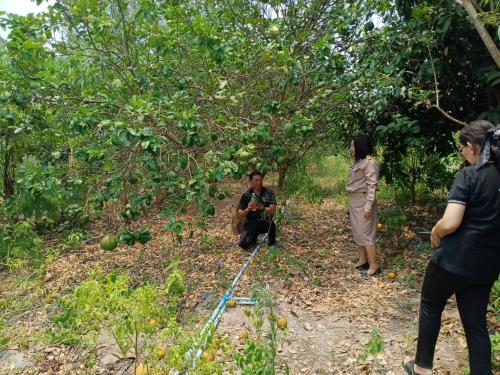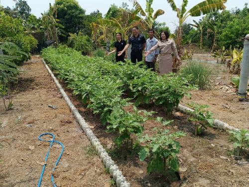 การลงพื้นที่ในครั้งนี้ มีวัตถุประสงค์เพื่อ ติดตามความคืบหน้าการใช้ประโยชน์ในพื้นที่จริง พร้อมทั้งให้คำแนะนำในการบริหารจัดการทรัพยากรให้เกิดประสิทธิภาพสูงสุด โดยเน้นย้ำเรื่อง "การรวมกลุ่ม" ของคนในชุมชน เพื่อสร้างเครือข่ายแลกเปลี่ยนองค์ความรู้ การผลิตปุ๋ยอินทรีย์ และการแปรรูปผลผลิตทางการเกษตร เพื่อลดรายจ่ายและเพิ่มรายได้ให้กับครัวเรือน ด้าน คุณกุลวดี สมบุญ เจ้าของแปลงพื้นที่ต้นแบบ ได้นำเสนอแนวคิดที่น่าสนใจในการยกระดับพื้นที่ให้เป็นมากกว่าแหล่งผลิตอาหาร โดยมีเป้าหมายที่จะผลักดันให้เกิดการปลูกพืชที่หลากหลายโดยใช้พื้นที่จำกัด และสนับสนุนการพัฒนาพื้นที่เพื่อเป็นจุดนัดพบในการกระจายสินค้าเกษตรปลอดภัยจากสมาชิกในหมู่บ้านและเครือข่ายโคก หนอง นา ใกล้เคียง